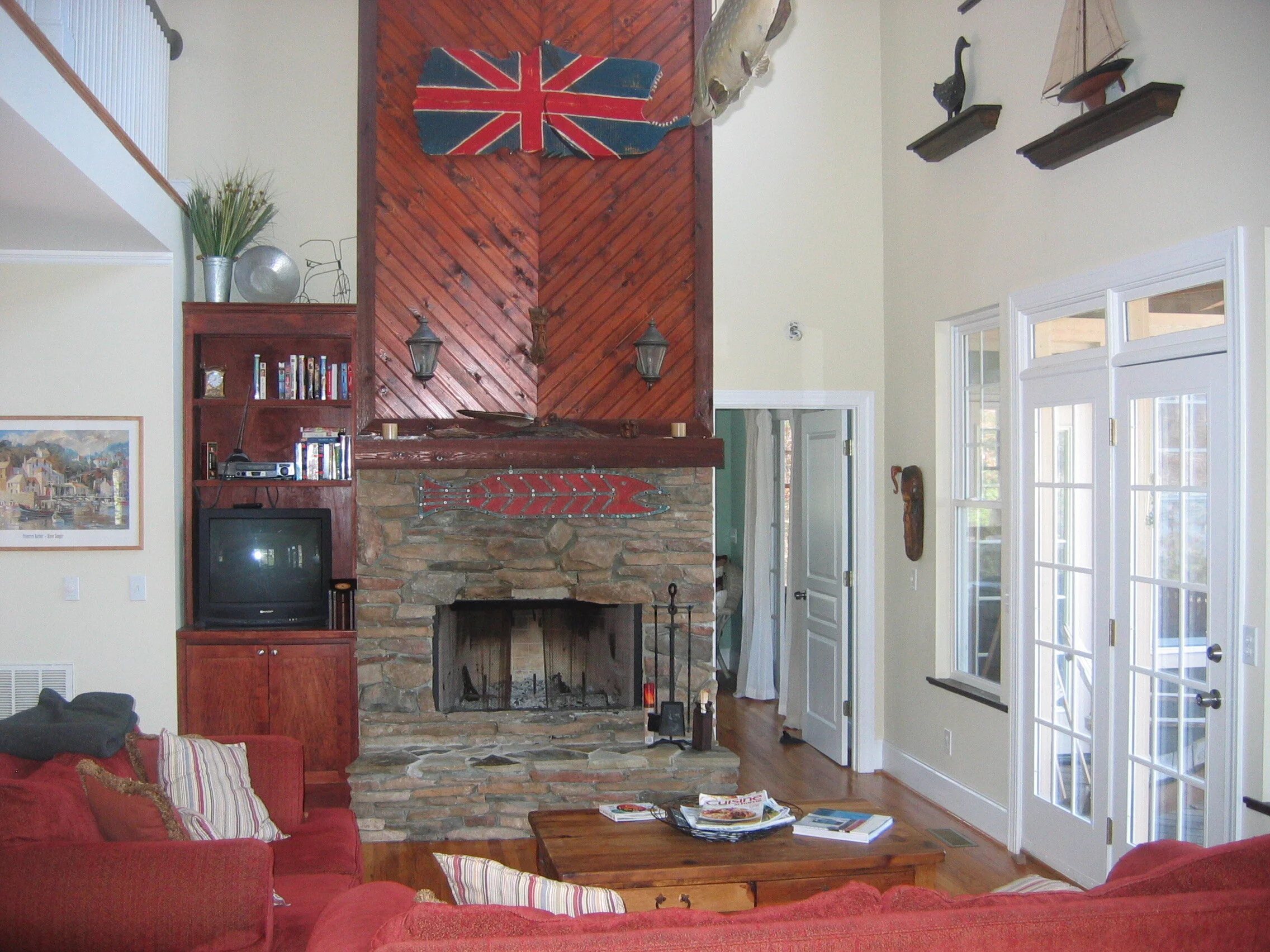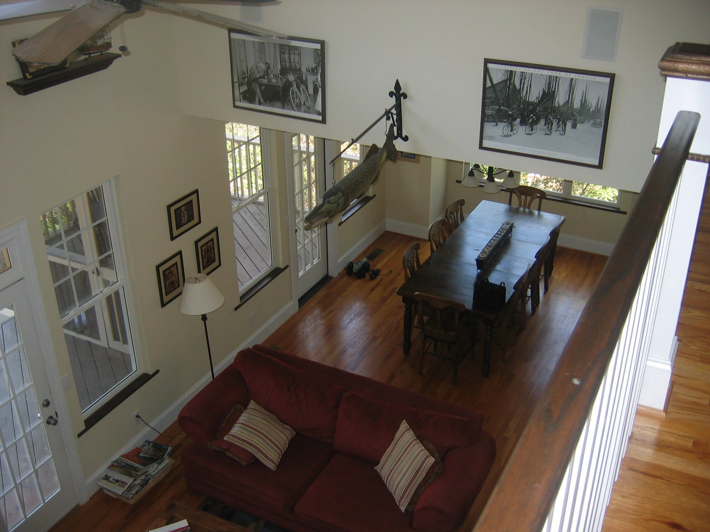 Dominic is a local contractor whom I have worked with for many years on many, many projects. Both on his personal projects and his real estate purchases, remodels and rentals. They have since sold this/their lake house and Dom has now slowed down. To be honest, I don’t remember a lot of the specifics of this design, which was done in 2000. In looking in the file, there were a couple of “book” one page plans but they don’t resemble the actual floor plan or elevation at all. So perhaps I just worked from dimension restrictions inherent to the lot and a list of rooms wanted. Jennifer always does such a great job decorating, as you can see from the from these pictures and also from the their personal Tudor home.